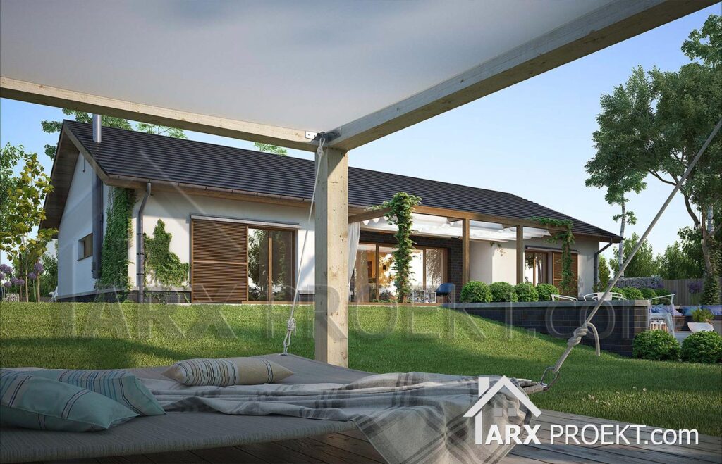 Проект дома «Дана 3» есть также в уменьшенной версии, на 100 м.кв. с тремя спальнями и без гаража«Дана«.