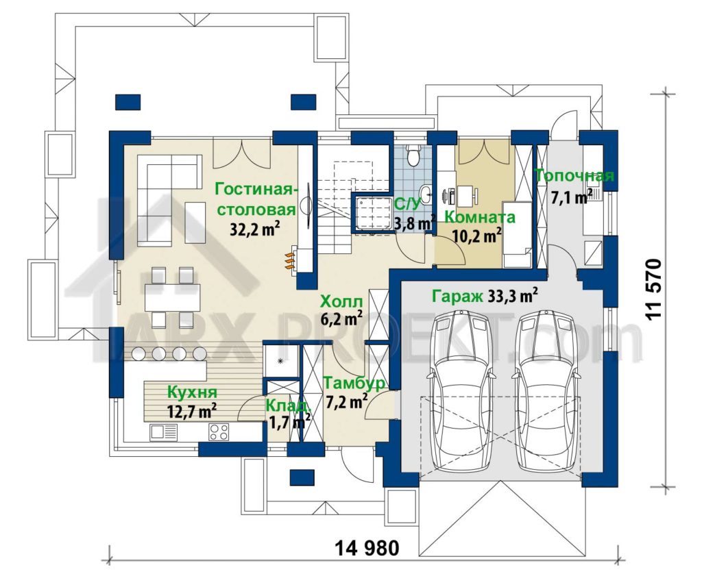 Проект дома «Джон 2» есть также в меньшей версии с гаражом на один автомобиль «Джон«.