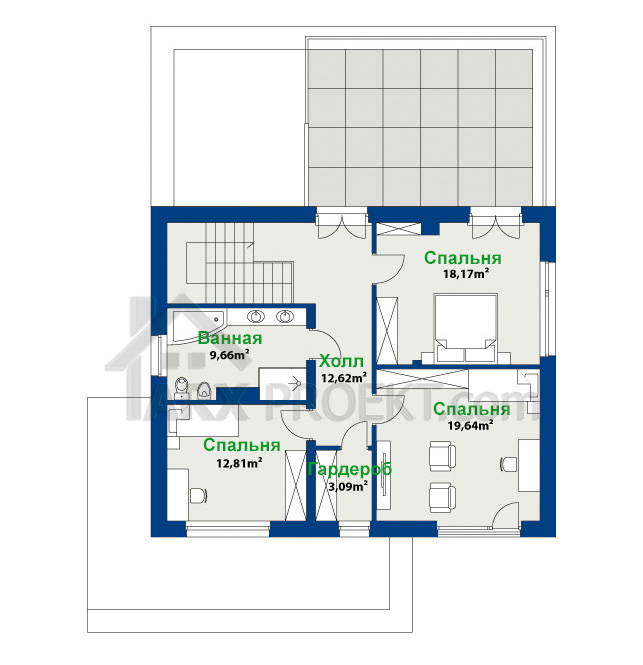 Особенность Проект стильного двухэтажного дома с плоской крышей, гаражом на 2 авто, камином и крытой террасой. Современный дом, в котором формы фасада подчеркиваются линиями террас и балконов, навесами и панорамными окнами гостиной и спален, в котором много пространства и планировочных удобств для повседневной жизни и отдыха. На первом этаже дома есть кухня, переходящая в столовую с выходом на боковую террасу. Гостиная отделена камином и стеклянной перегородкой (аквариумом), далее — выход на частично накрытую террасу. С холла можно попасть в просторную комнату, рядом также прачечная, санузел с душевой. Хозяйственная часть состоит из гаража для двух авто, и топливной позади гаража. На втором этаже три спальни, одна с выходом на большую террасу над гостиной, и общая ванная комната.
