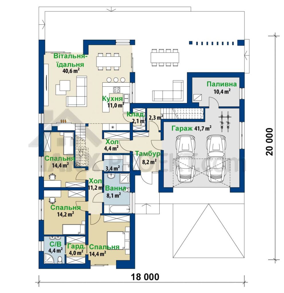 Габариты дома – 18,00 м (ширина)
