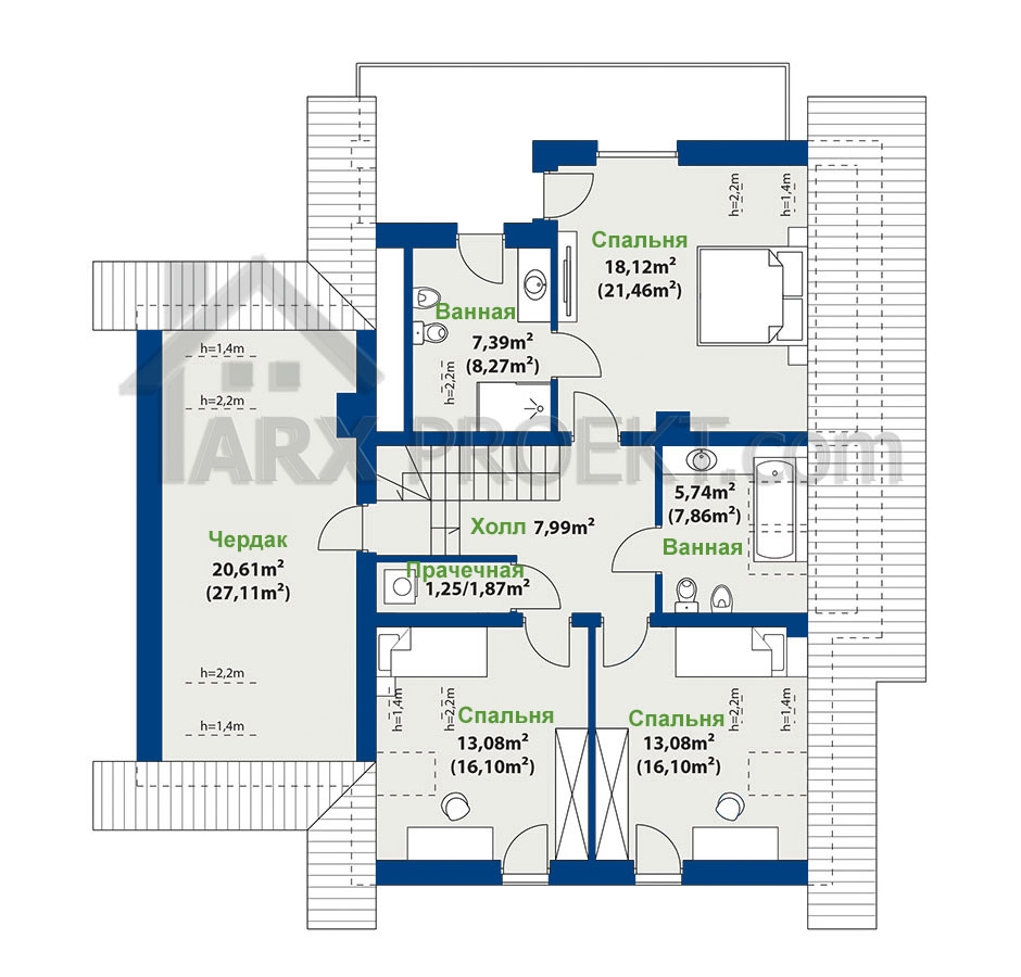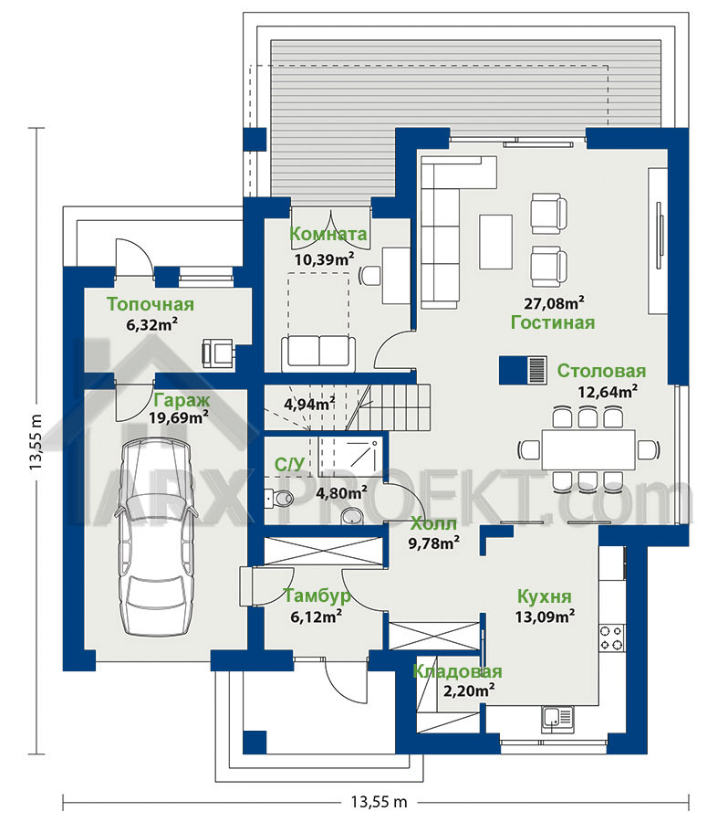 Проект дома «Инна» есть также в версии с гаражом на 2 авто «Инна 2«.