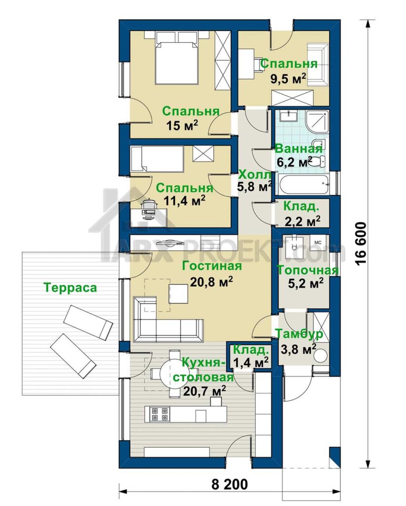 Габариты дома — 8,20 м (ширина)