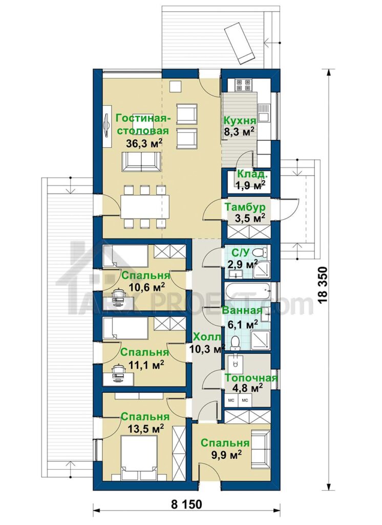 Габариты дома — 18,35 м (длина)