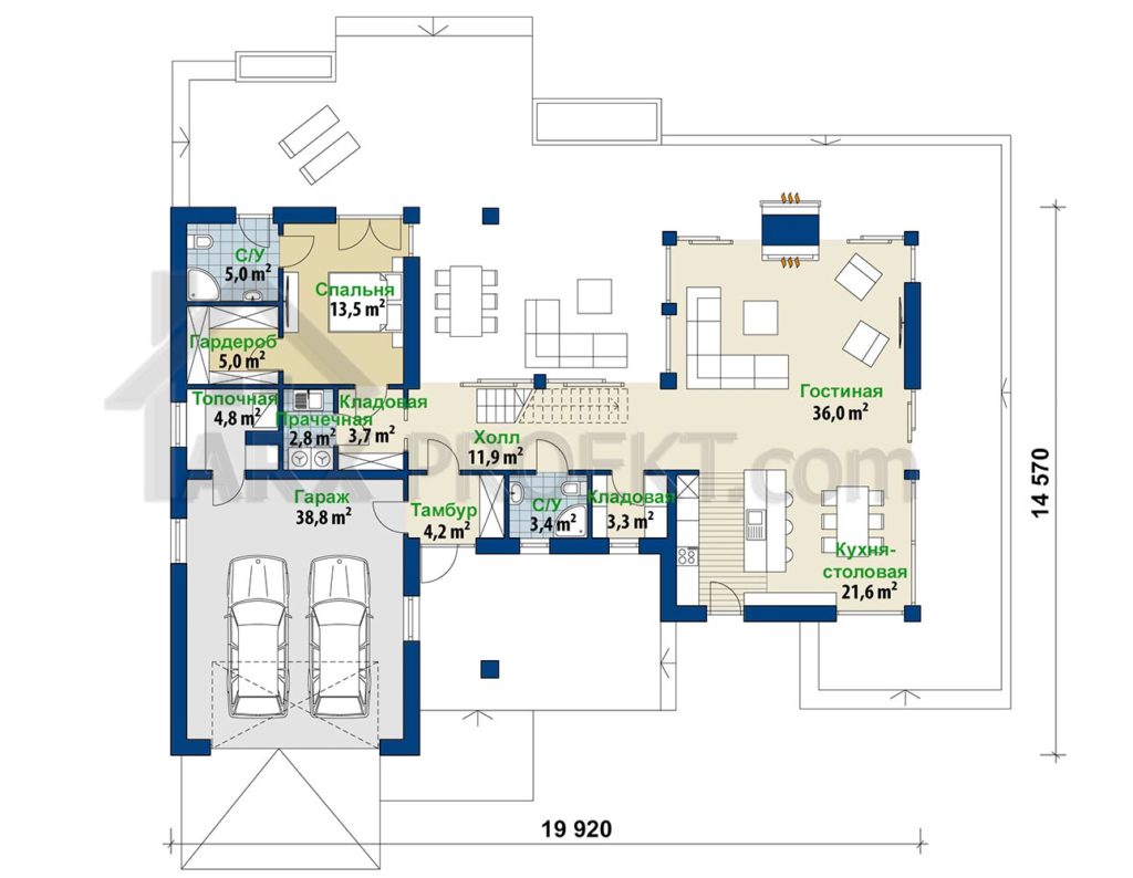 Габариты дома — 19,92 м (ширина)