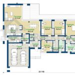 Опис проекту: Стильный проект одноэтажного дома с плоской крышей, гаражом на 2 авто, с камином и крытой террасой.