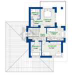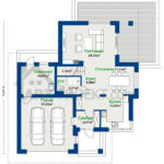Современный просторный дом, отличающийся элегантностью и стилем. Функциональное расположение первого этажа – это, главным образом, дневная зона, в том числе гостиная, где можно хорошо провести время у камина, открытая кухня, переходящая в столовую. Площадь первого этажа дополняется санузлом с душевой, гаражом на 2 авто и подсобным помещением/топливной сзади гаража. В холле и тамбуре есть место для шкафов. Из холла также мы можем подняться по лестнице на второй этаж, где разработаны три спальни, в том числе одна с отдельной ванной и гардеробной, а также выходом на балкон. Другие спальни также просторны и удобны, одна с угловым окном. Все дополняется общей ванной. Дом может быть с гаражом для одного автомобиля и кабинетом на 1 этаже.