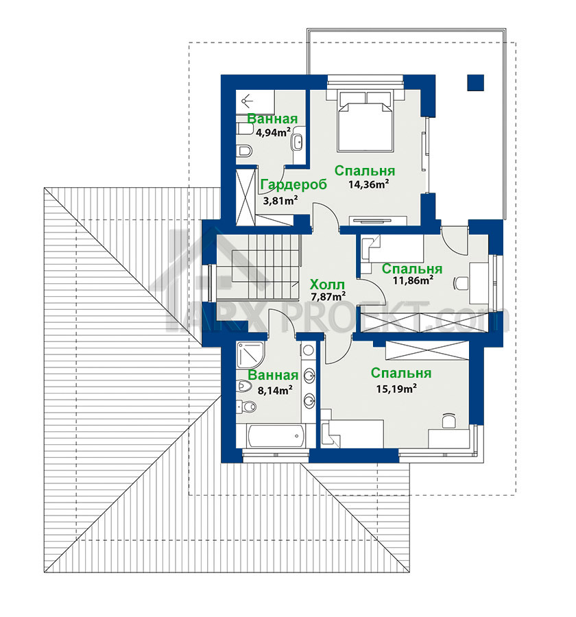 Габариты дома – 14,45 м (длина)
