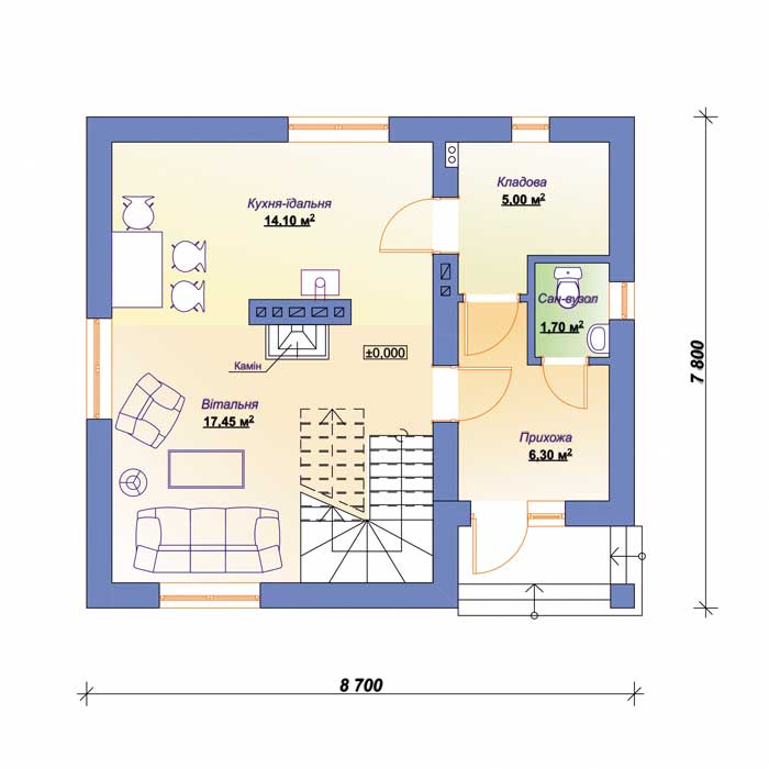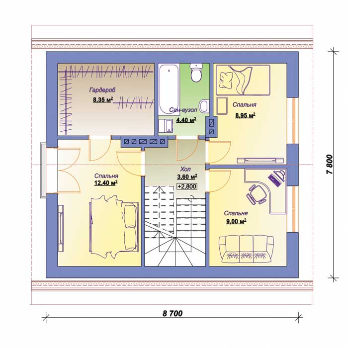 Габариты дома – 8,7 м (ширина)