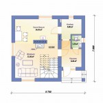 Особенности: Одноэтажный дом с жилой мансардой, без подвала, предназначен для семьи из 2-3 человек. Спальная зона состоит из трех спален, гардеробной и ванной комнаты. Благодаря своей простой форме, стоимость строительства этого дома невысока. Проект «Цикоринка» — подходит для строительства на малых участках. В планировании близок к квадрату — 8 м * 9 м.