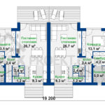 Общая площадь – 112,9 м²/ 130,4 м²(один блок)