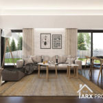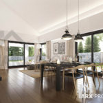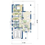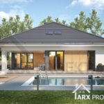 Одноповерховий будинок з експлуатованим горищем, яке може бути адаптоване до житлових функцій. Щоденна зона, розташована на першому поверсі, – відкритий простір, де вітальня поєднує в собі їдальню та кухню. Основна тераса створена позаду будинку, що робить цей будинок ідеальним для незвичайних ділянок. Тераса також накрита, що робить її чудовою зоною відпочинку, захищеною від сонця та дощу. Нічна зона складається із трьох спалень (одна з окремою гардеробною та ванною кімнатою), додатково є ванна кімната та невелика кладова. У холі також є загальний С/В.
