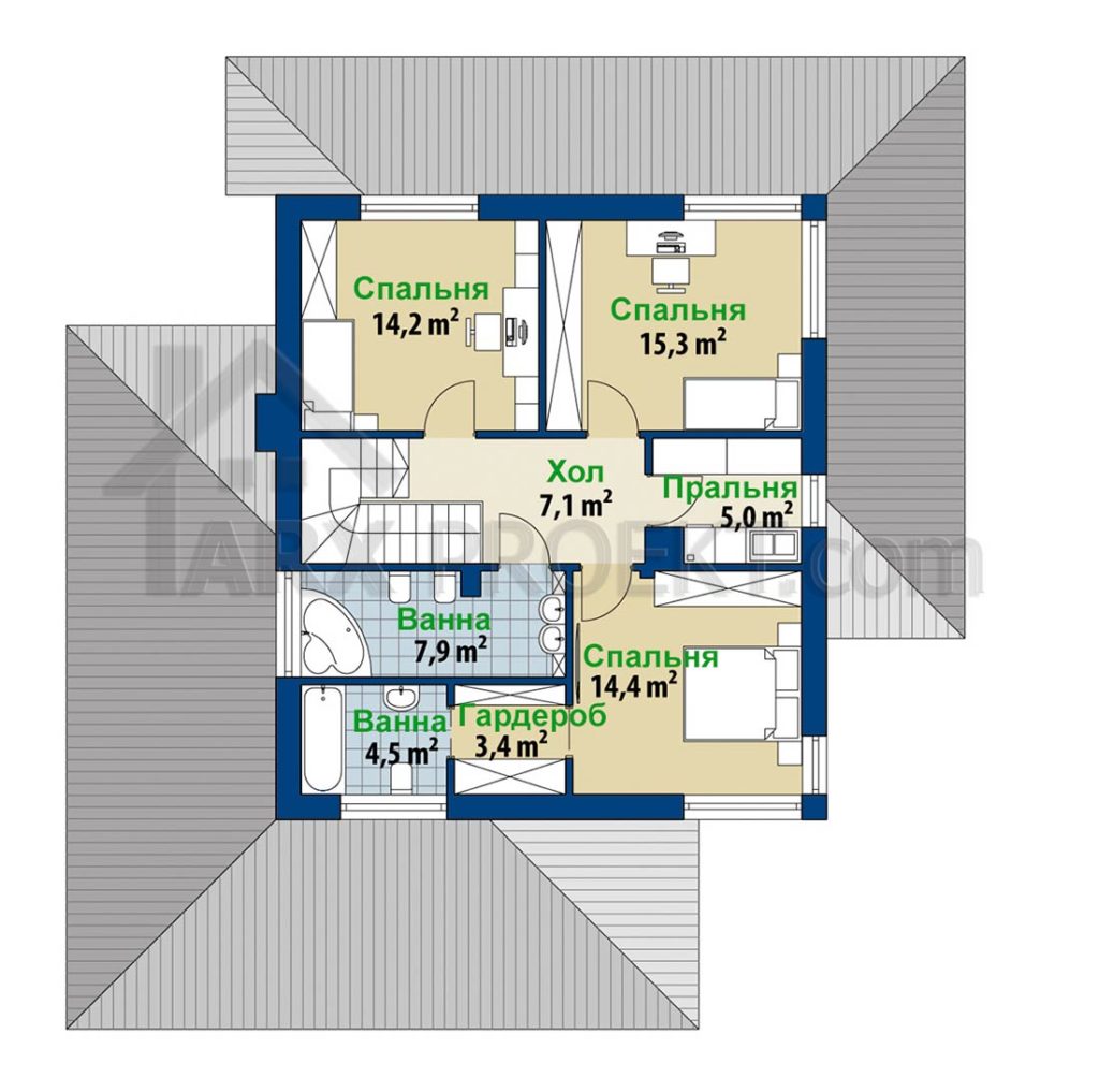 Та у версії із 4-ма кімнатами на 2 поверсі і терасою над гаражемНаомі 3.