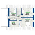 Описание проекта: Проект небольшого дома с мансардой, гаражом и террасой, 8х14 м. Компактная форма здания была покрыта простой двускатной крышей, гарантирует несложное строительство и невысокие затраты, связанные с ним. Функциональная планировка комнат обеспечивает комфорт для семьи из 4 человек.